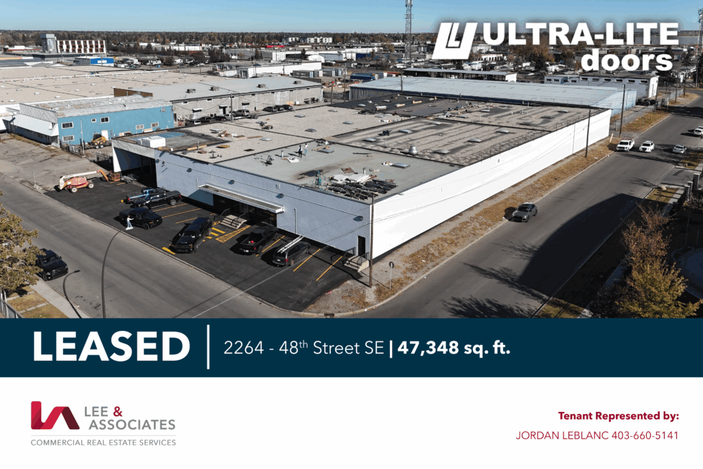 LEASED | We’re excited to announce that Ultra Lite Overhead Doors Ltd. has secured a new 47,348 sq. ft. industrial facility in SE Calgary on a long-term basis. Our team is proud to have represented Ultra Lite Overhead Doors Ltd. in their successful lease expansion as they continue to grow after being in business for over 40 years!